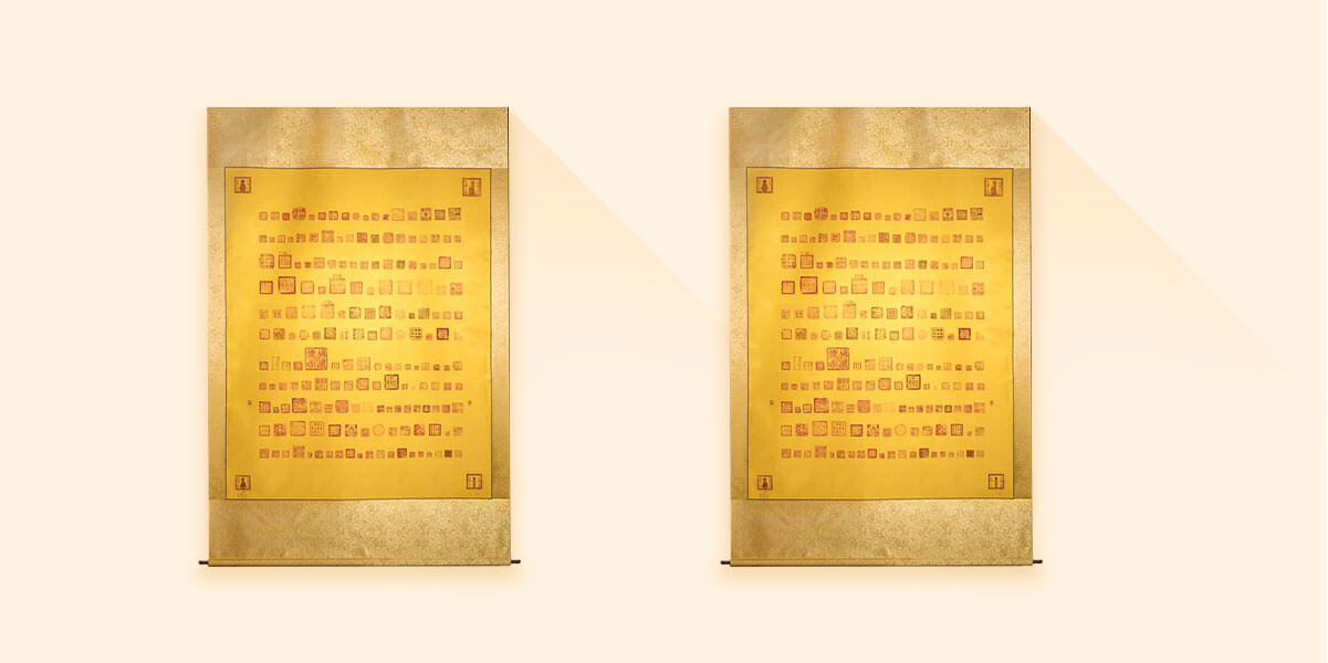 “百印祥福”系列产品是以寺院佛印为题材,是一件以寺院佛印为展示主体,具有祈福镇宅功能的装饰挂画。